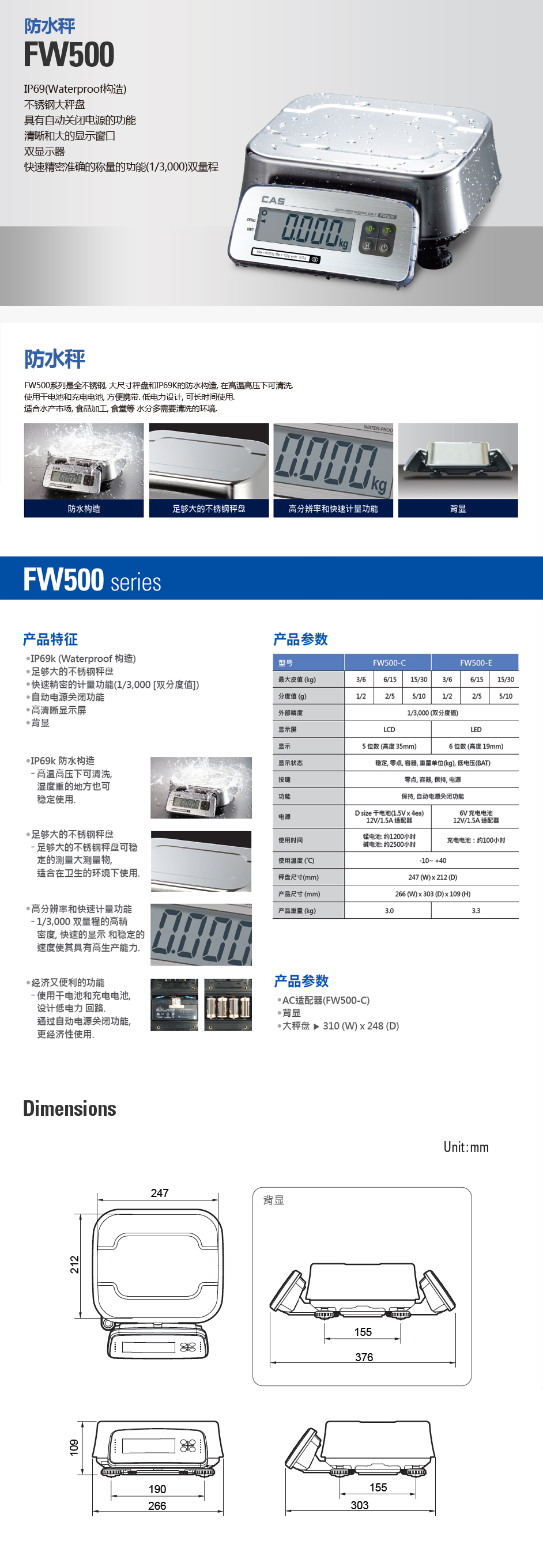 FW500系列配有大型不銹鋼稱重板,具有IP69k防水結構,可進行高溫高壓洗滌。 <br>