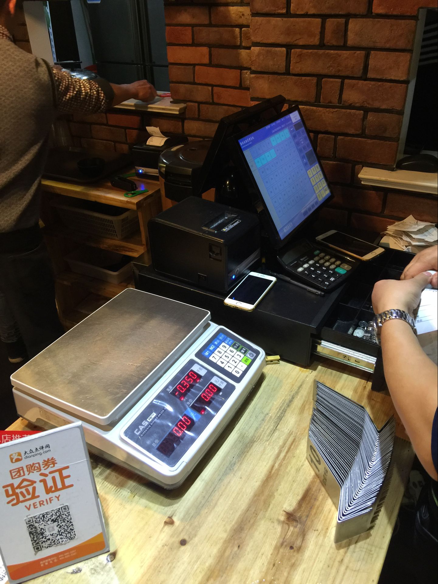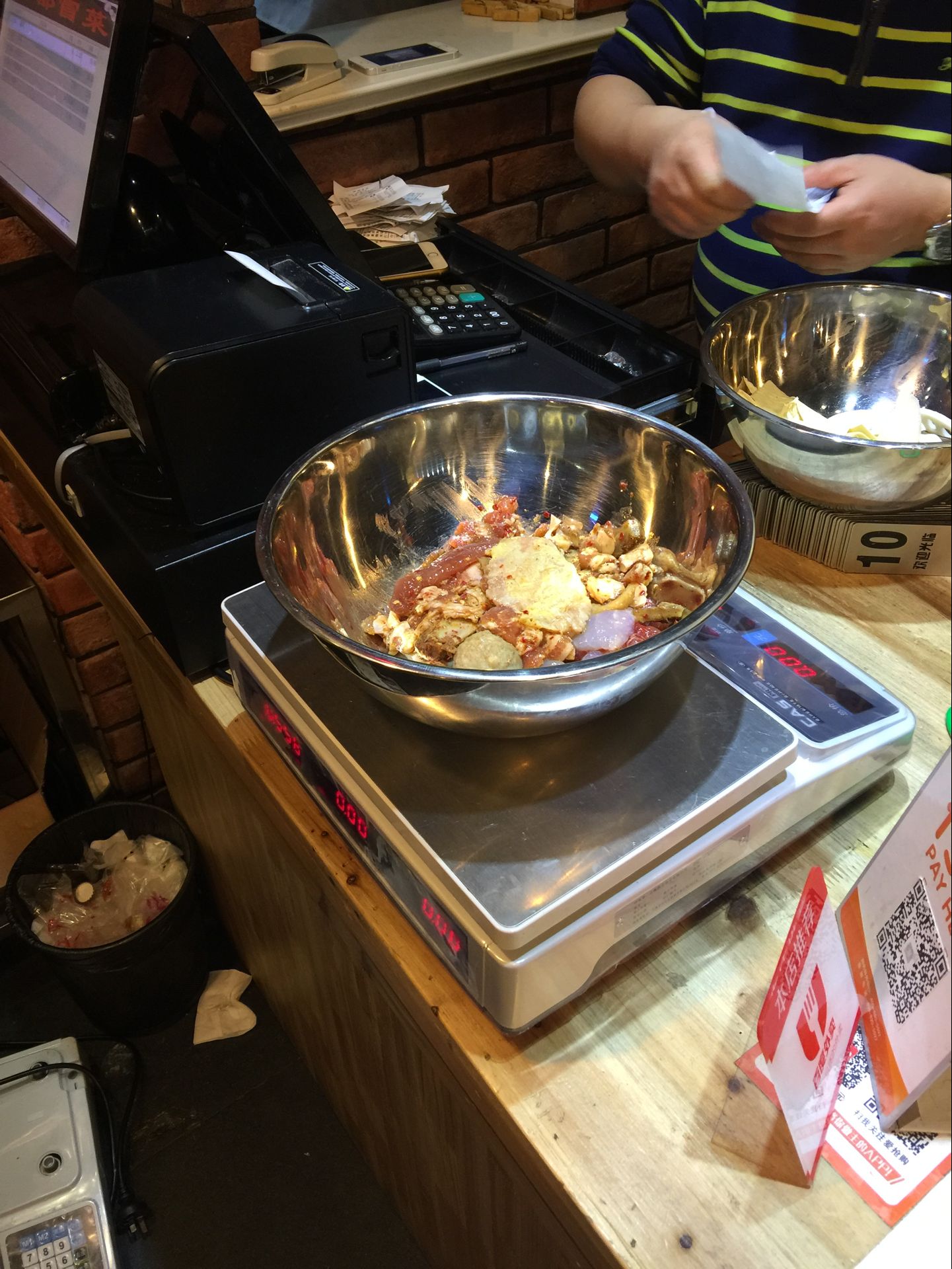 蜀都冒菜食品稱重秤采用凱士電子PR系列電子計價秤,此款收銀機帶稱,一體機,不僅可以稱重收銀,而且可以配合掃描槍 ,掃描有條碼的商品收款,因視頻錄制環境原因,沒有演示掃描功能,實際上收款機具備一切收款機的功能,可以掃描收款,取重收款