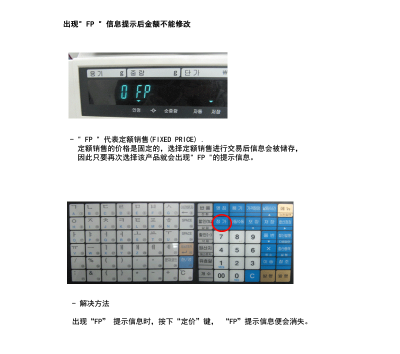[CL5000series] 出現" FP " 信息提示后金額不能修改